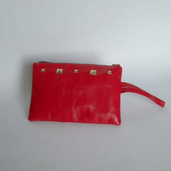 Red leather purse with studs