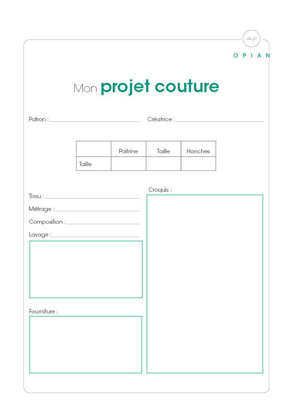 Préparez tous vos prochains projets couture avec cette fiche. Elle vous permettra de noter vos choix de tissu ou vos mesures, vous pourrez même l'emmener avec vous à la mercerie pour ne pas oublier de fournitures.